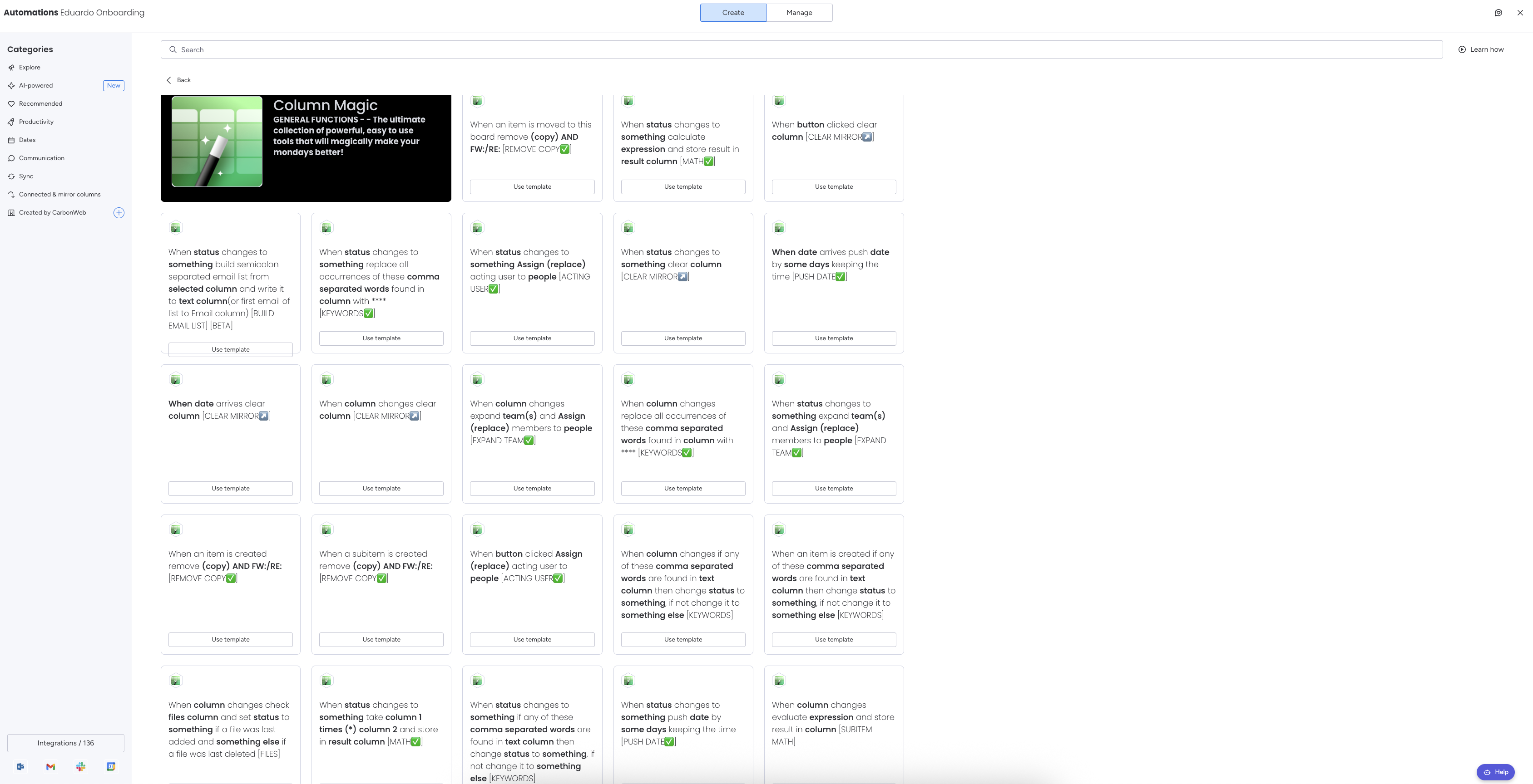You will see a list of all the "Column Magic" integrations that can be used inside your board. From here, read the different integration recipes and choose the one that best fits your needs!